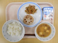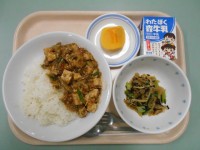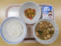 *今日の献立*お話献立「おとうふ2ちょう」よりごはん 根菜の麻婆豆腐 糸寒天サラ...