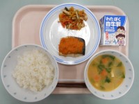 *今日の献立*ごはん 呉汁 さばの紅葉焼き 煮びたし 牛乳*今日の食材の産地*し...