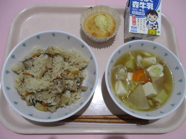 エリンギごはん けんちん汁 カップケーキ 牛乳
