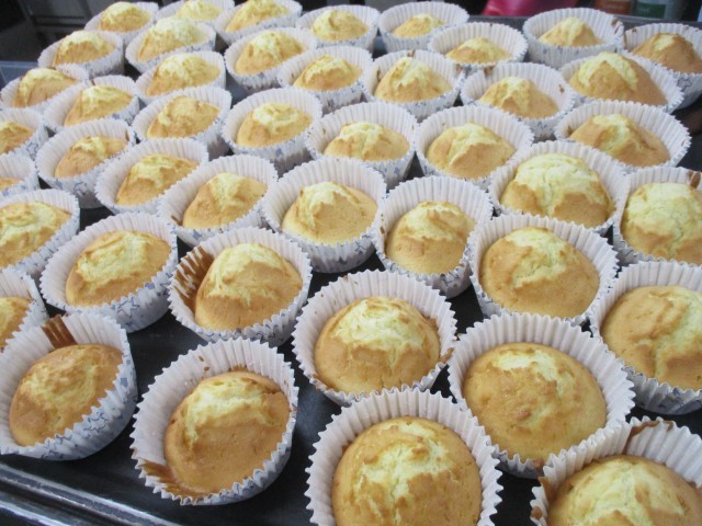 本からとびだしたメニュー 今日は『はらぺこあおむし』から、カップケーキを作りました。