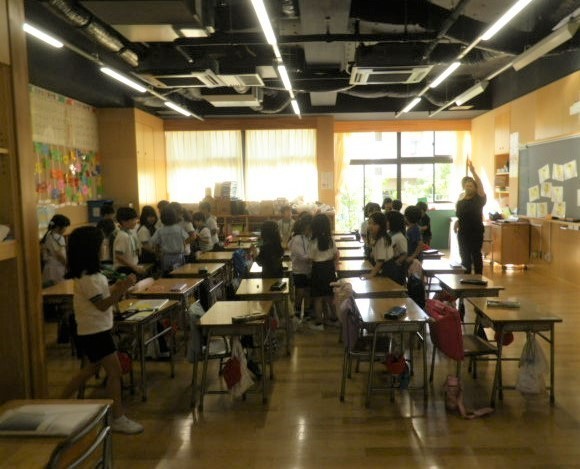 手や身体を動かして、ワイワイ楽しく伝え合って英語を学んでいます。
