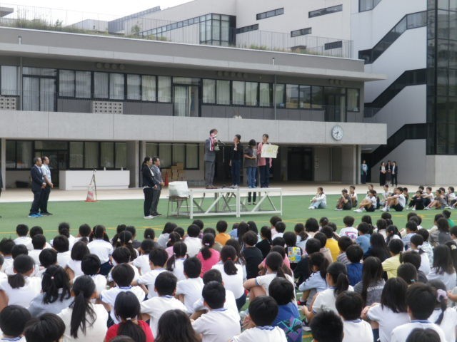 校長先生から、一生懸命頑張る人を応援する大切さ、運動で身体を動かす良さ、読書の秋のことなどお話がありました。後期は大きな行事もあります。励まし合い、思いきり挑戦していきます。