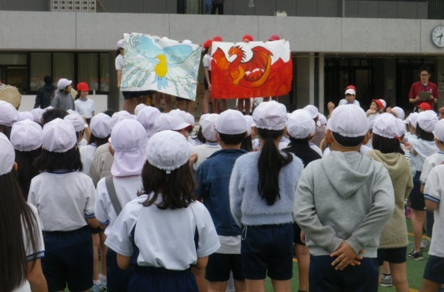 紅白それぞれの旗は子どもたちからデザインを募って選ばれたものです。