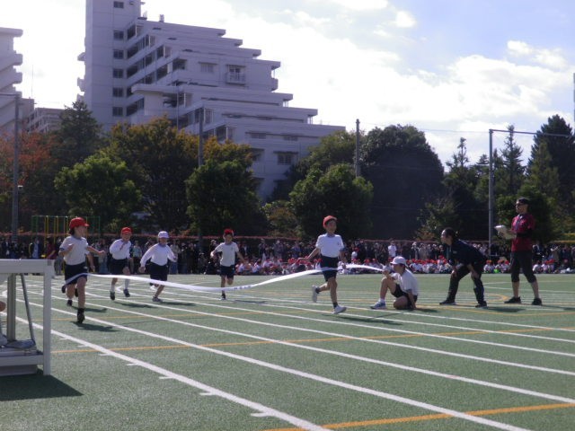 前半に全学年の徒競走と高学年のリレーを行いました。