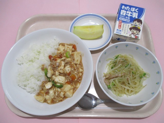ごはん 西湖豆腐 バンサンスー りんご 牛乳
