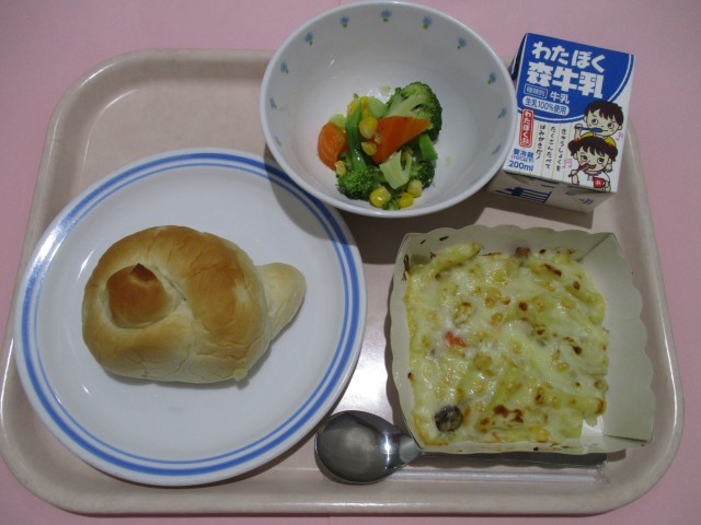 パインパン 海老マカロニグラタン 3色サラダ 牛乳