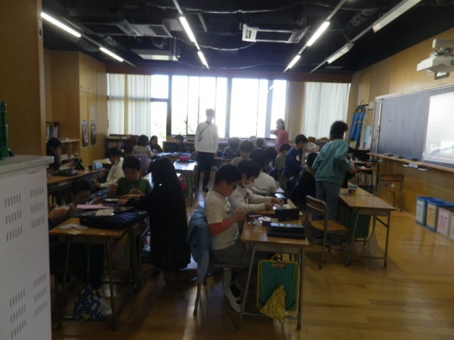 室内でも校庭でも、5、6年生が作業や動きを分かりやすく教えていました。