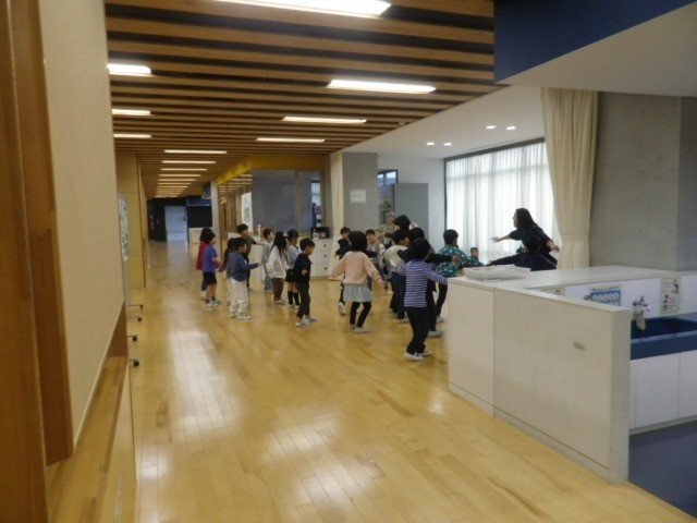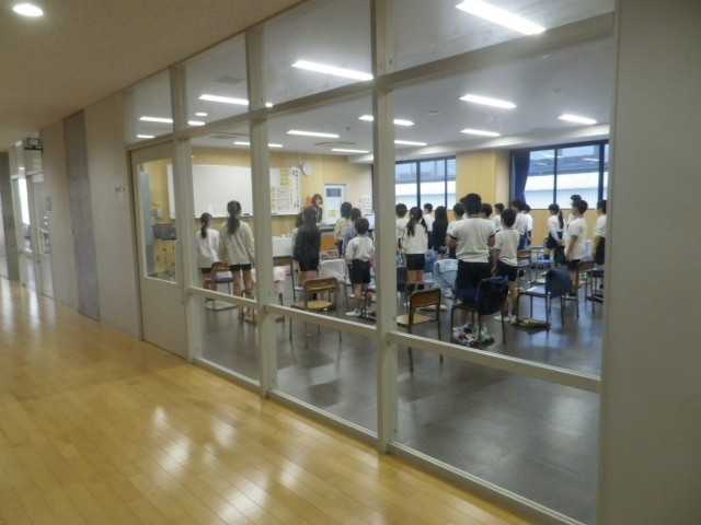 1年生は学年スペースで場面の動きを、4年生は音楽室を使って歌の練習中です。