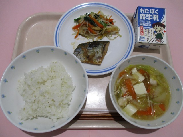 ごはん  吉野汁  さばの味噌煮  お浸し  牛乳