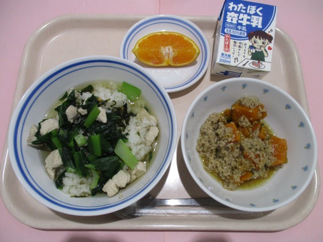スープ茶漬け 南瓜のそぼろあんかけ はれひめ 牛乳