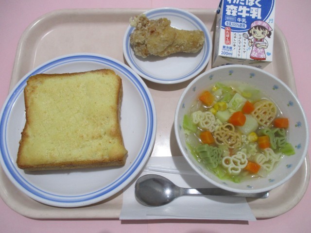 ビスキューイトースト パスタスープ フライドチキン 牛乳