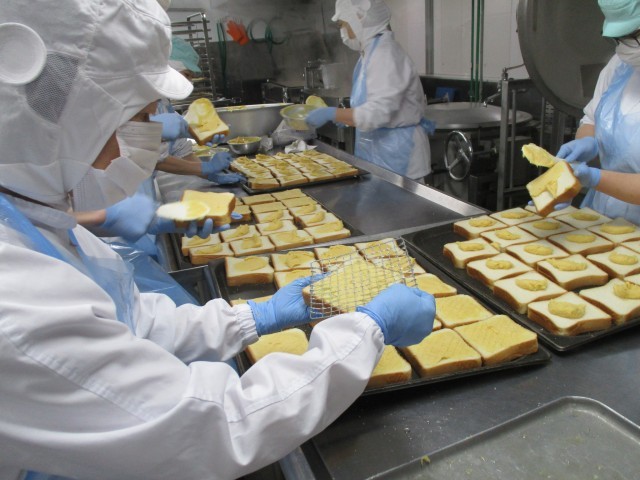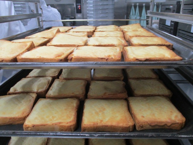 ビスキューイトーストは、メロンパンの生地を塗って焼いたパンです。