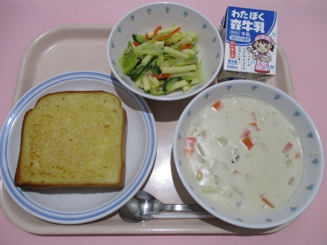 ハニートースト ビーンチャウダー マカロニサラダ 牛乳