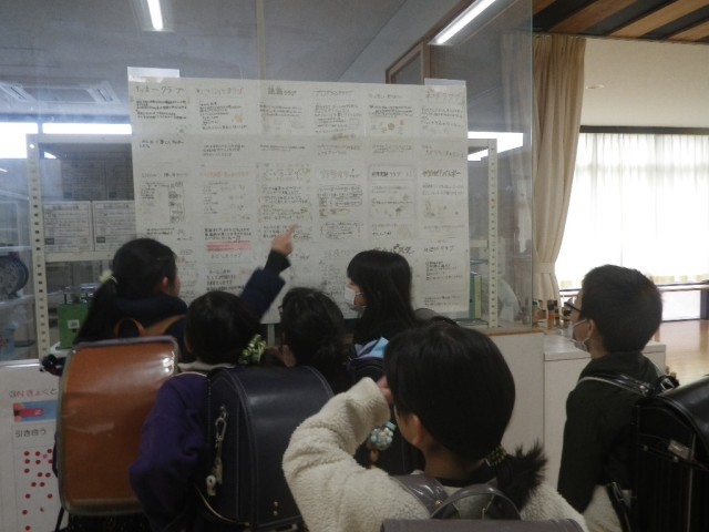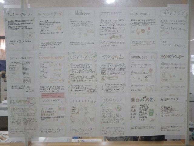 来年度のクラブの紹介ポスターを見ている4年生です。