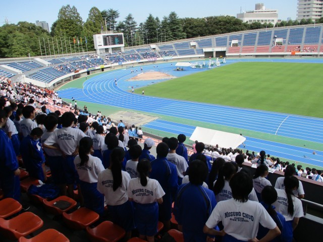 10月2日の目黒区連合体育大会。選手も応援選手も、本当によく頑張りましたね。夏休みから猛練習して、自分の限界に挑戦していた選手たち。また、応援で選手を支えた観覧席の生徒たち。いくつもの思いが重なった「瞬間」が、とてもまぶしく、美しく見えました。