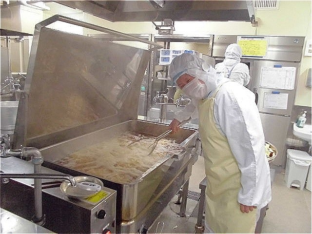 器の大きさの関係で、うどんは、つけめん方式で出しています。