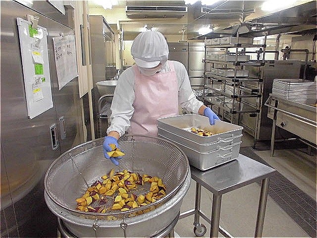 さつま芋を素揚げにして、給食室で作った、とろり、つやつやな蜜を