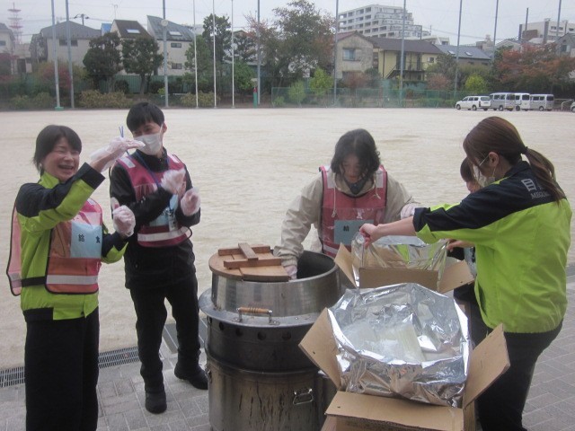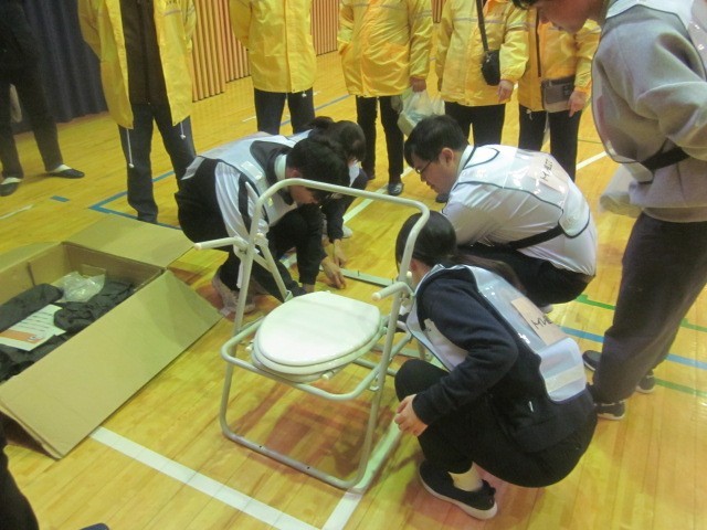 マンホールトイレ設営、アルファ化米炊き出し、簡易担架作成等、いろいろな経験ができました。