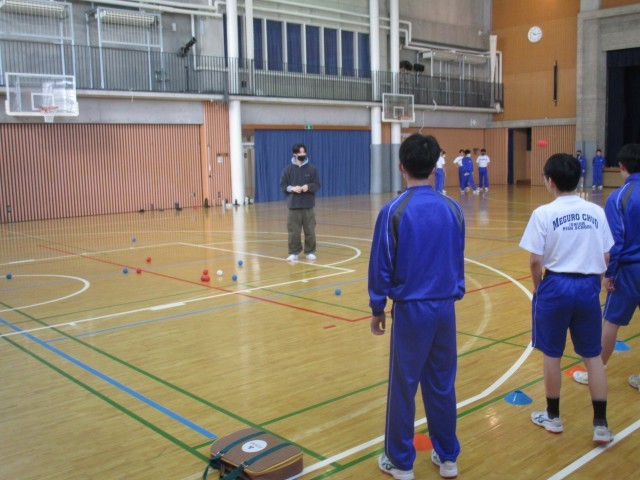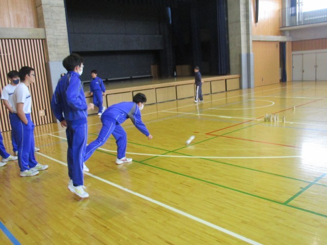 しいの木学級 体育の授業の様子です。2チームに分かれ、「モルック」と「ボッチャ」に取り組んでいます。