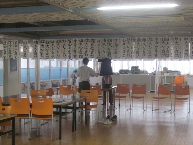 3階では、書き初めを吊るしていました。