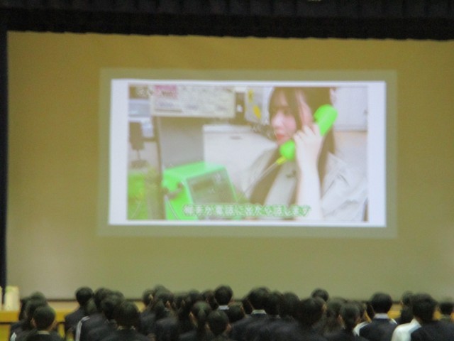 1年生はしおりで3日間のスケジュールや持ち物の確認をしました。一方、2年生は、体験先での行動や、万が一に備え、普段使うことの少ない公衆電話で連絡を取る方法も全体で確認しました。