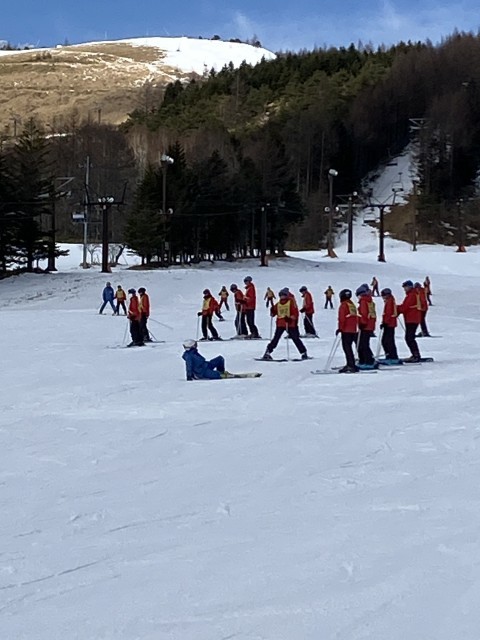 ほとんどの班がリフトに乗り、インストラクターの指導に従って、どんどん上達しています。