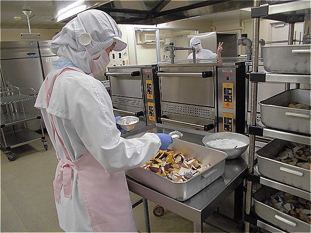 さつま芋の雪景色は、素揚げにしたさつま芋に雪に見立て、粉砂糖を降り