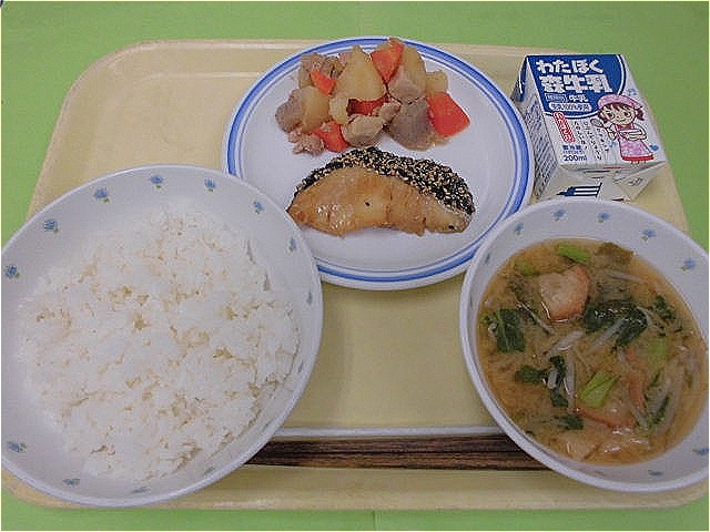 今日は、一汁二菜の和食献立です。味の基本となる5つの中の(甘み、