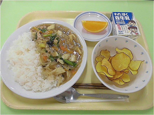 今日は、ネーブルの鮮やかな色、さつま芋の色、中華丼の中でいろ