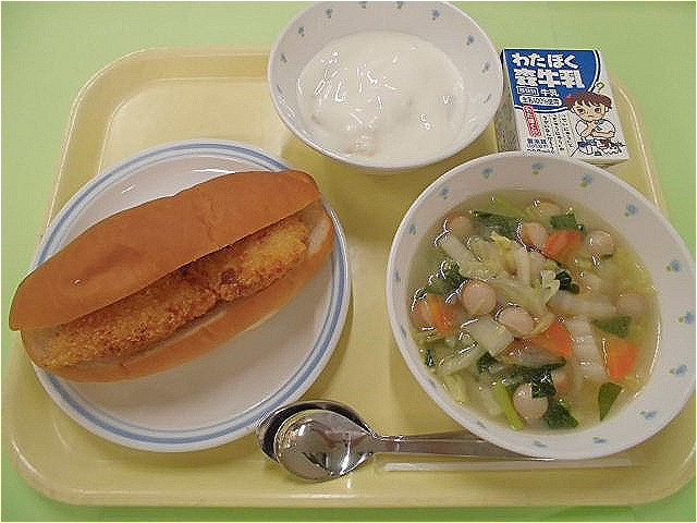 メルルーサをさっくとしたフライにして、国産の小麦粉で作った、コッペパン