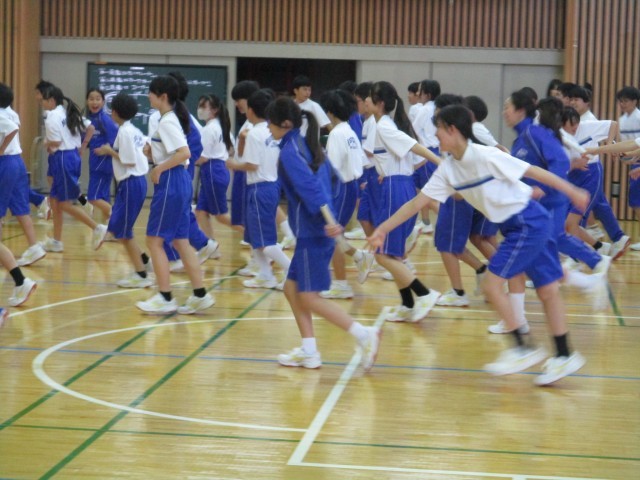 1年生体育では、体育祭に向けてリレーのバトンパス練習をしました。