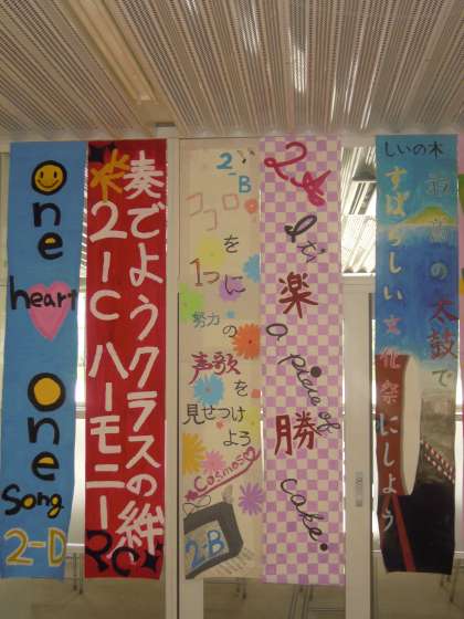 本日は、その文化祭に向けて各クラスで作成したスローガンをご紹介します。