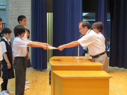 「今日は部活動の表彰と、清掃強化週間の表彰があった。清掃強化週間の表彰では、たくさんのクラスが表彰されていた。おかげで、いつもより教室がピカピカになっていたので、良かったと思う。」(広報委員会 2年 女子)