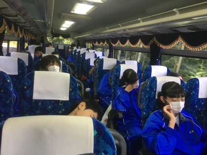 長時間の行動にむけて休んでいる生徒が多いです。