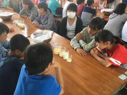牧場の方の言うことをよく聞き、アイス作りが始まります。