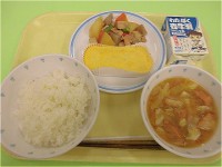 ごはん 豆腐入りハンバーグ ビーフン炒め