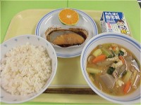チリコンカンライス ミネラルサラダ 果物(柿) 牛乳