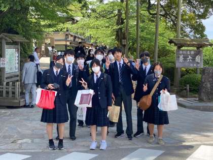 ABC組は和菓子作り体験、DES組はお土産購入の時間です。