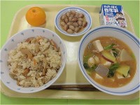 《献立》*クッパ*青のりごま大豆*みかん🍊*牛乳《食材産地》だいこん(茨城県) ...