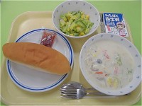 《献立》*コッペッパン*いちごジャム🍓*白菜ときのこのホワイトシチュー*コールス...