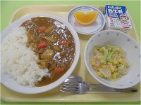 《献立》*カレーライス*ツナサラダ*ネーブル*牛乳《食材産地》にんにく(青森県)...