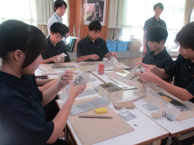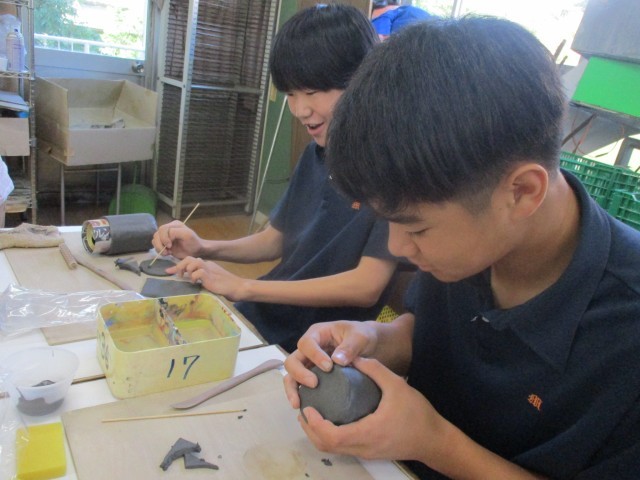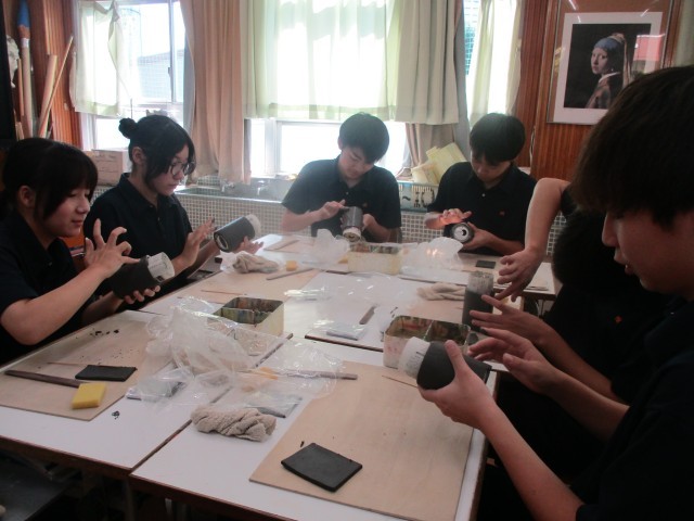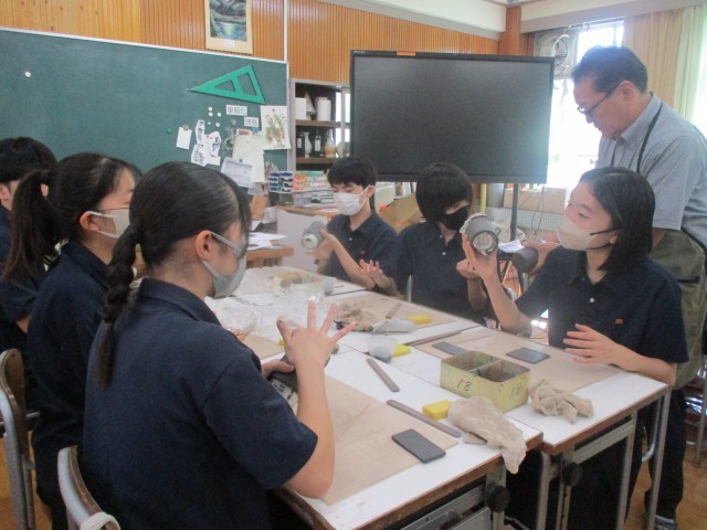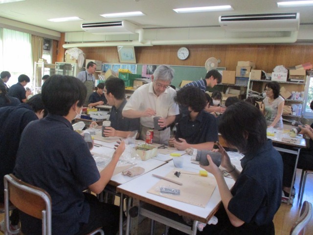陶芸の授業です。ひかり工芸さんの指導のもと、オリジナルのマグカップを作ります。