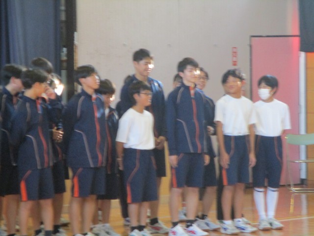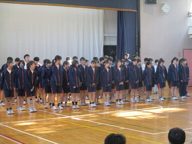 区連体の壮行会が行われました。一中の代表となる選手のみなさん、頑張ってください。応援団のみなさんも、他校に負けず頑張りましょう。