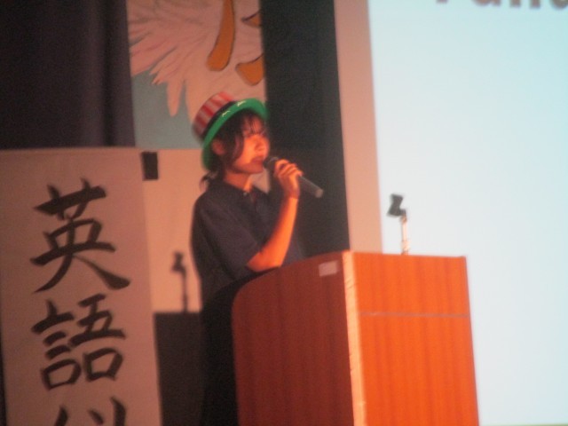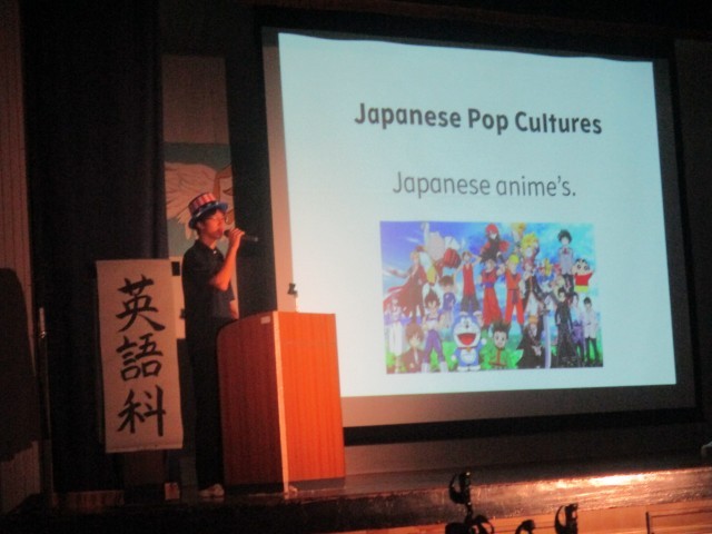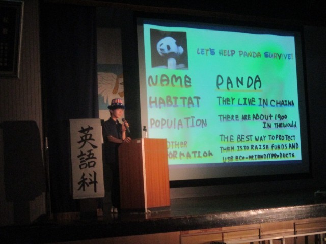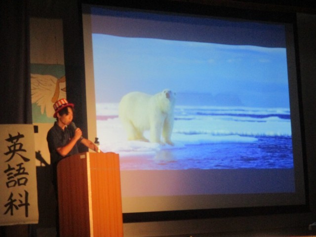 3年生英語スピーチ。絶滅危惧動物、日本のポップカルチャーなど様々なトピックについてのプレゼンが行われました。