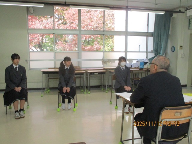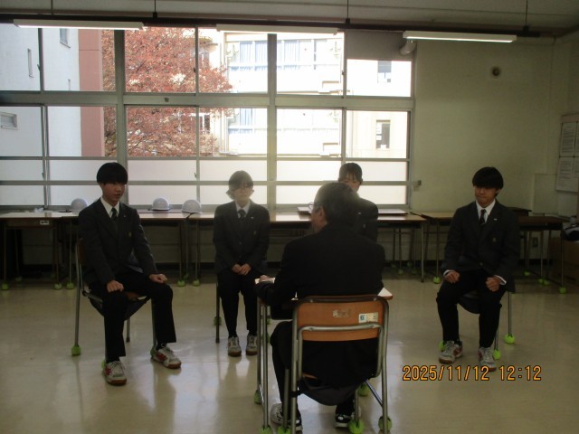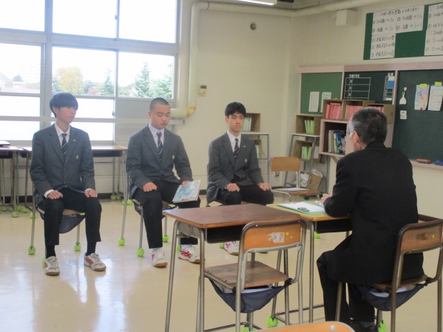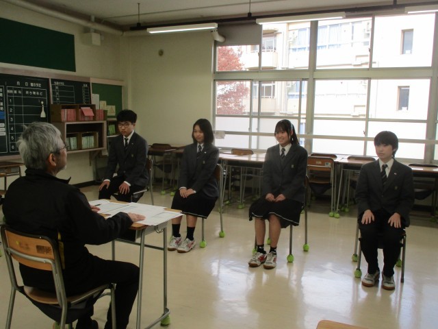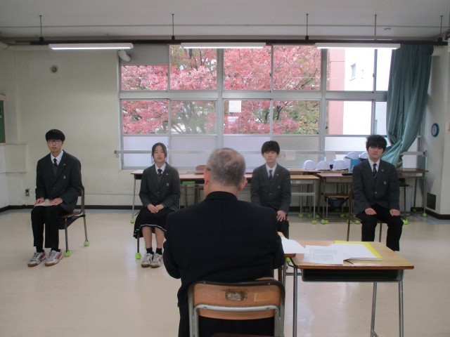3年生は進路への取組の一環として、面接練習を行っています。11日と12日の2日間は、校内の教員が面接官となり、集団模擬面接練習を行いました。