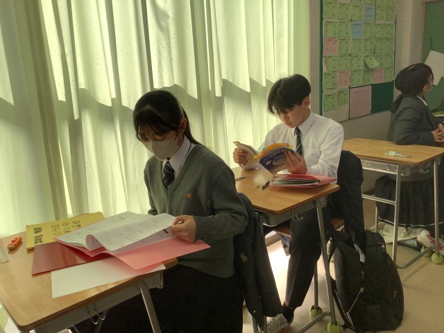 後期中間考査2日目です。休み時間も学習内容の最終チェックを行なっています。努力を信じて、自分の力を発揮してください。