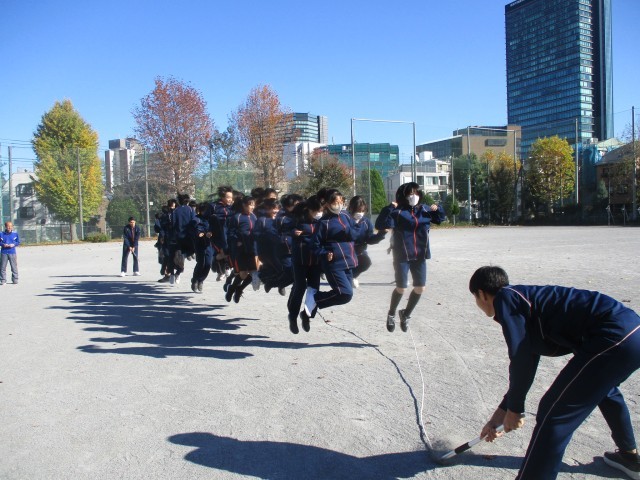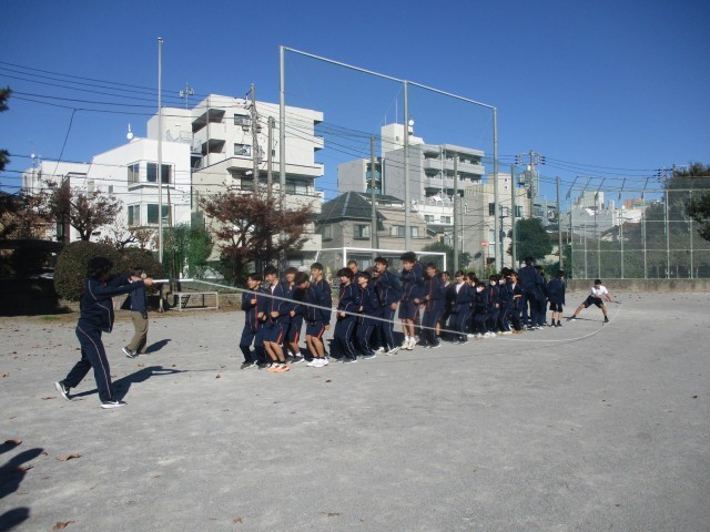 今年度の体育係の体力向上の取組は、学年別、クラス対抗の大繩跳びです。3年生は1年ぶりですが、クラス全員で2分間跳躍し続けました。勝ち負けに関わらず、楽しい時間を過ごしました。