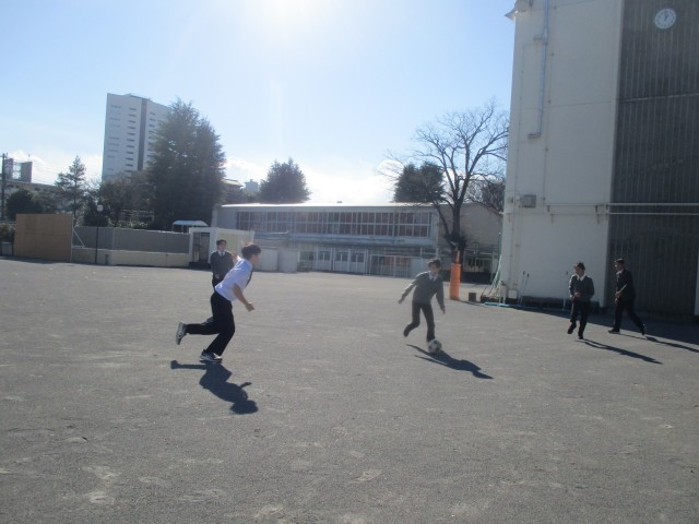 校庭やラバーコートで元気にサッカー、バスケットボール、バレーボールをしている生徒がいました。リフレッシュして午後の授業も頑張りましょう。