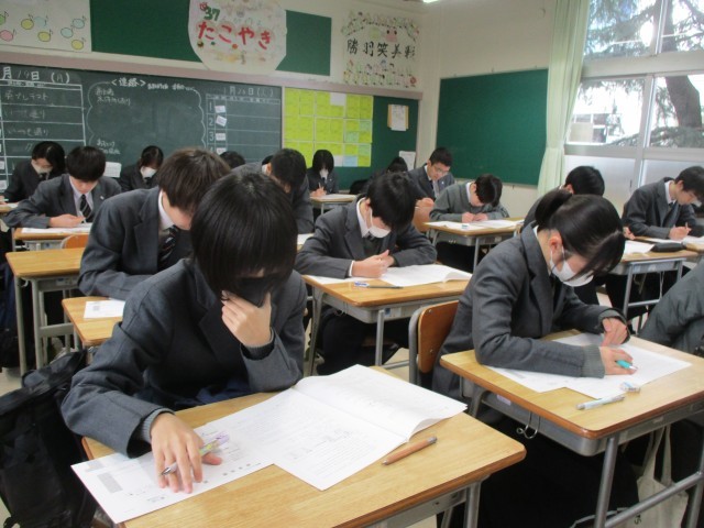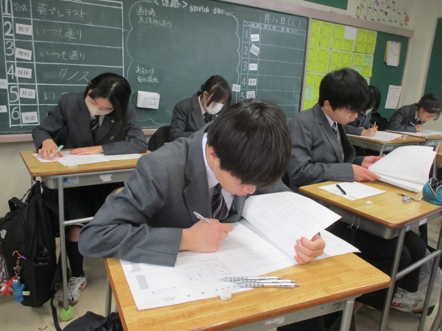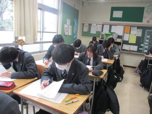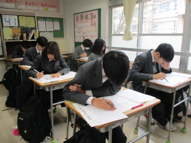 高校入試に向けて、英語のプレテストに取り組んでいます。がんばれ、3年生!