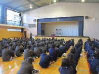 ダンスの授業です。学習用端末を活用して、グループごとに練習しています。